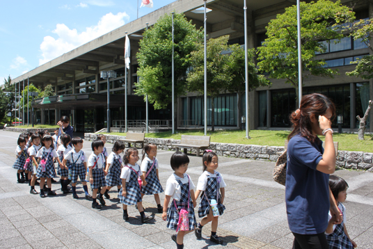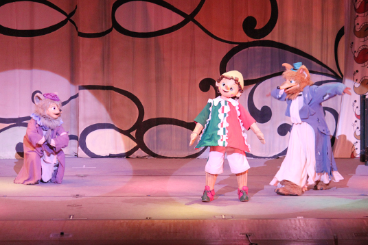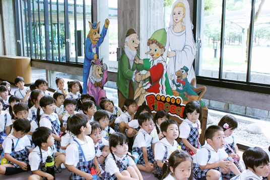 奈良県文化会館国際ホールで6月24日、劇団飛行船によるマスクプレイミュージカル「ピノツキオ」の公演があり、本園の年長・年中・年少児122名が鑑賞しました。この劇団は世界名作童話を中心に、登場人物の着ぐるみを着て演技する劇団で、日本をはじめ海外公演も行っています。 |