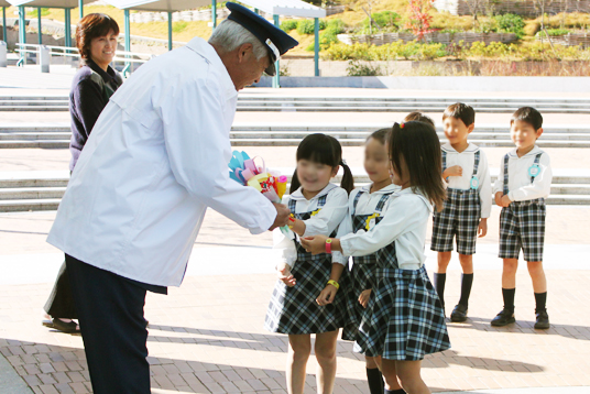 11月23日の勤労感謝の日に先立って、学園内で働いている方々がどんなお仕事をしているのかを学び、年長さんが園を代表して感謝の気持ちを伝えに行きました。