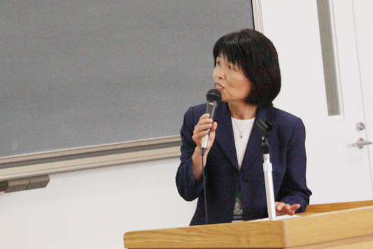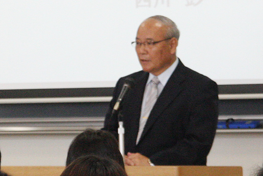 挨拶に立った西川理事長は学園全体を説明しながら、人間中心主義、本物・一流主義など本学の特徴を紹介。その後壇上に立った荒井恵子園長は「小一プロブレム」などの社会問題にもふれ「園児たちは、小学校のお兄さん、お姉さんを間近に見て、また一緒に過ごすことで、上級生への憧れや興味を持ち、自分の将来を身近に感じるようになります」と、同一敷地に幼・小・中・高が並ぶ本校ならではの異学齢交流の意義について説明しました。