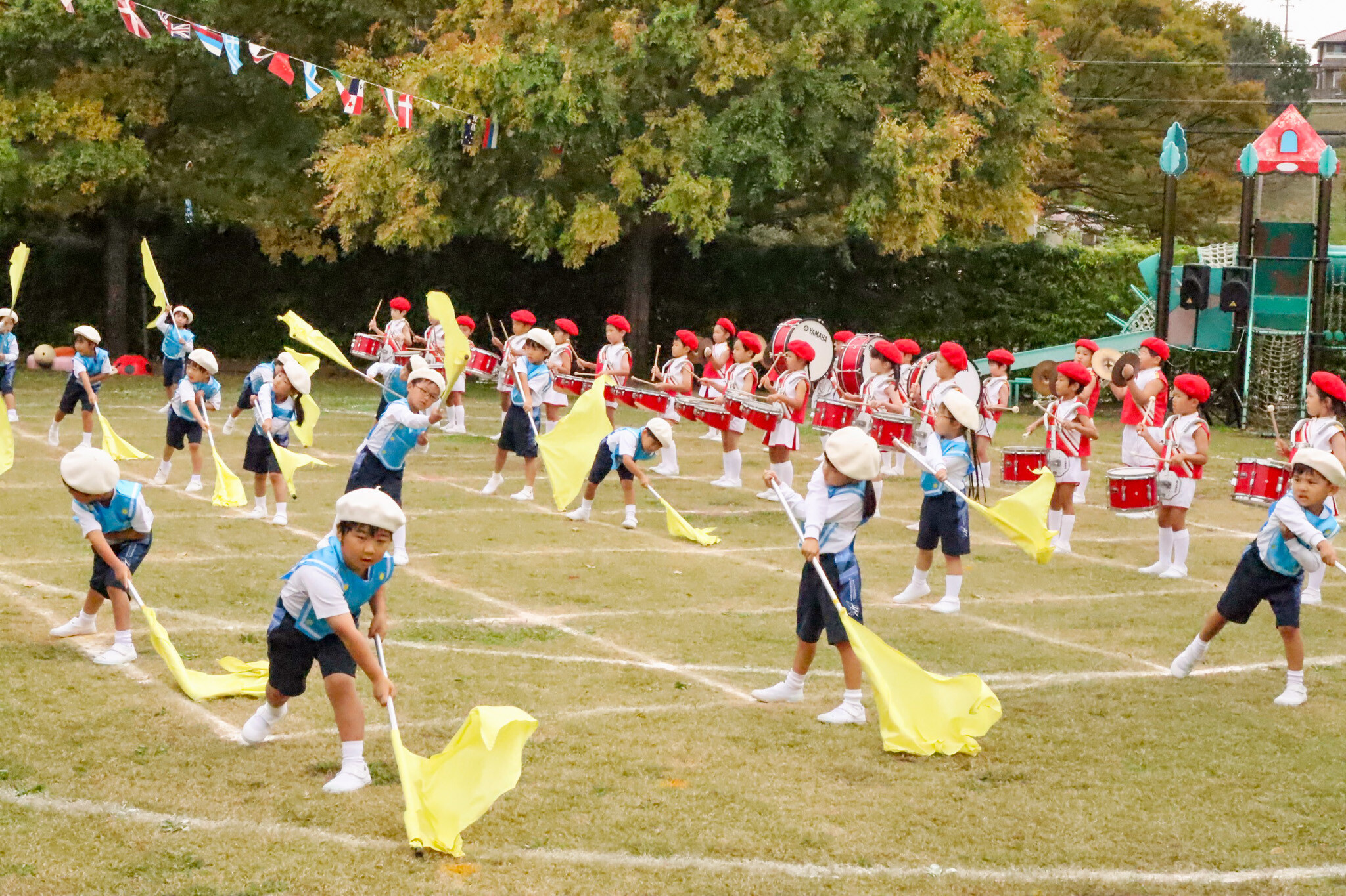 年長組による「奈良学園Pre-Primaryマーチングバンド」は今年も見事な演奏を披露。