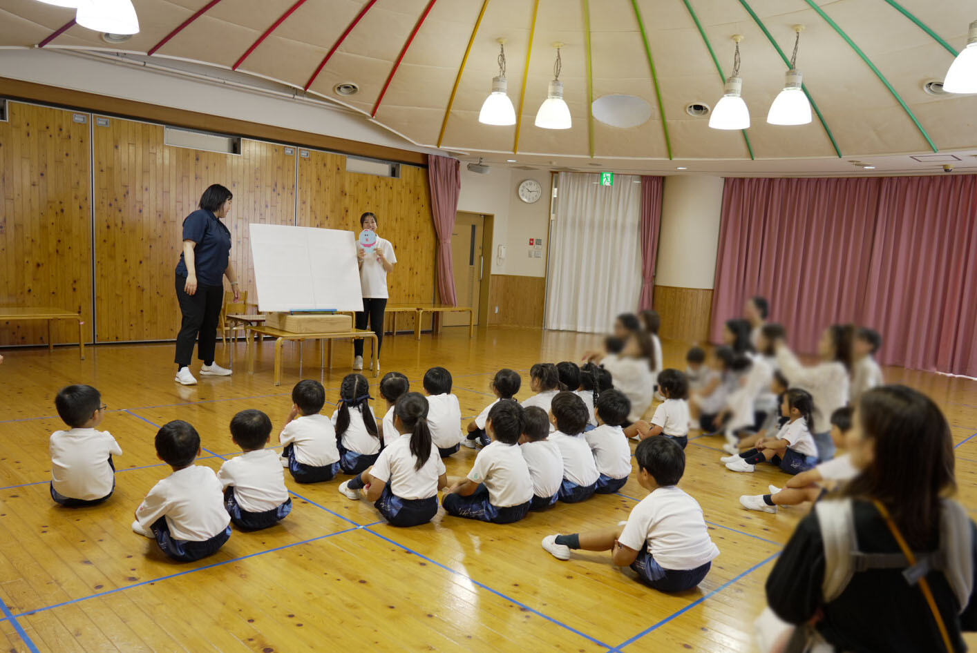 10月8日(水)、満2歳以上の未就園児とその保護者さまを対象に、体験入園「るんるんなとみん~在園児とふれあおう!」を行い、在園児たちと一緒に楽しい時間を過ごしていただきました。
