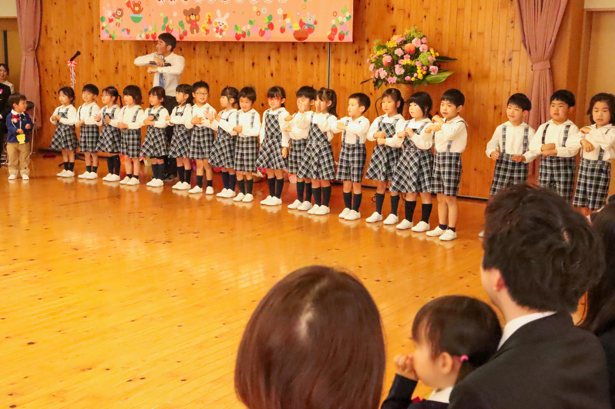 式の前には、先生と一緒に歌を歌ったり手遊びをしたりして、緊張をほぐすリラックスした時間を過ごしました。