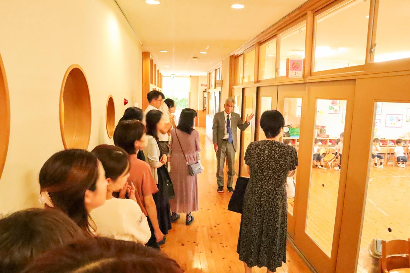 はじめに槇園長より、本園の教育方針や自然に恵まれた環境についてのお話がありました。「幼稚園という限られた時間の中でしか得られない学びを大切にし、遊びを通して心と体の成長を育んでいます」と語り、日々の保育への想いを伝えました。