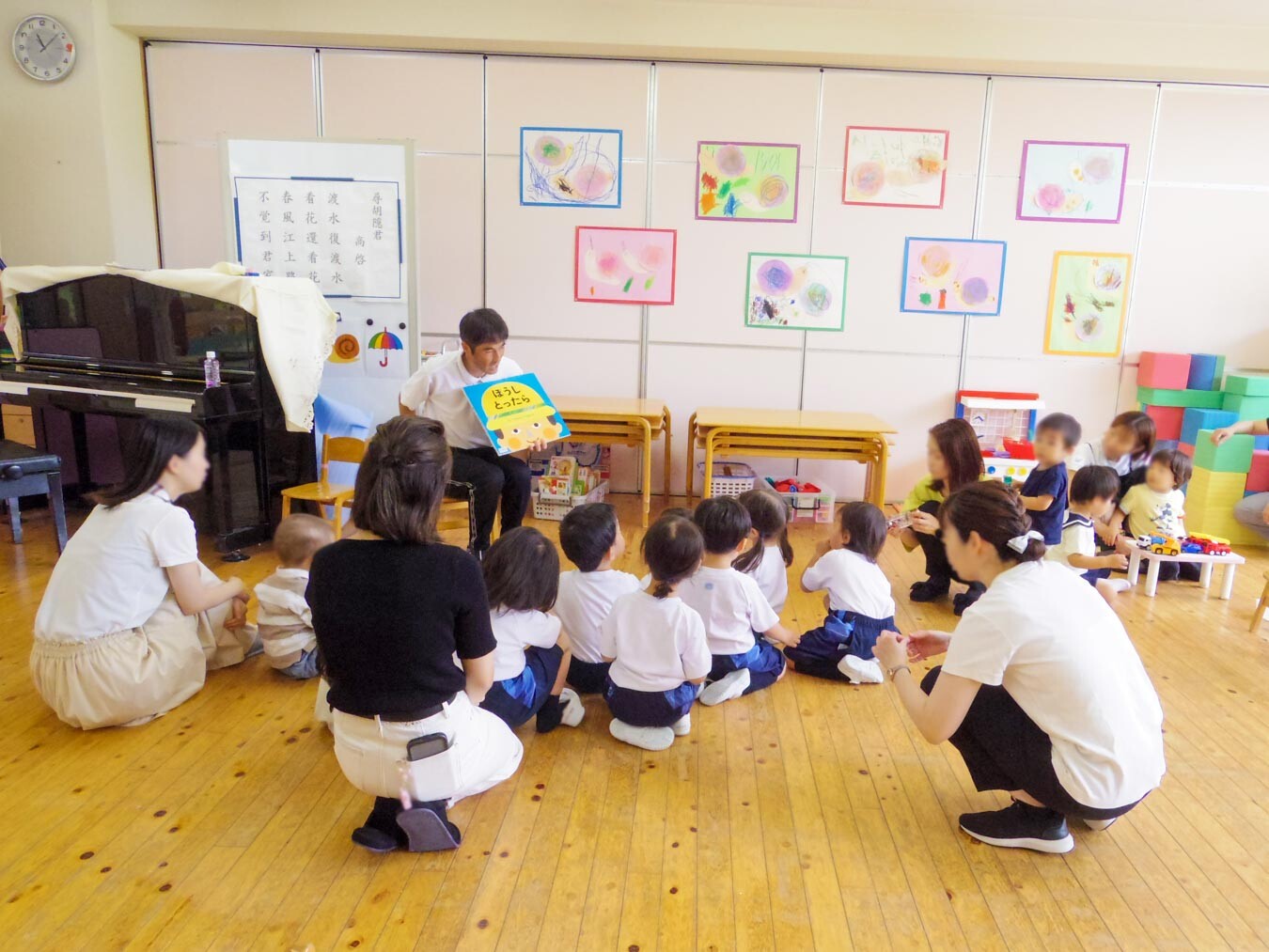 最後は、「ぼうしとったら」の絵本をみんなで聞いて、保育体験は終了です。短い時間でしたが、在園児といっしょに過ごす中で園の雰囲気を感じていただけたのではないかと思います。